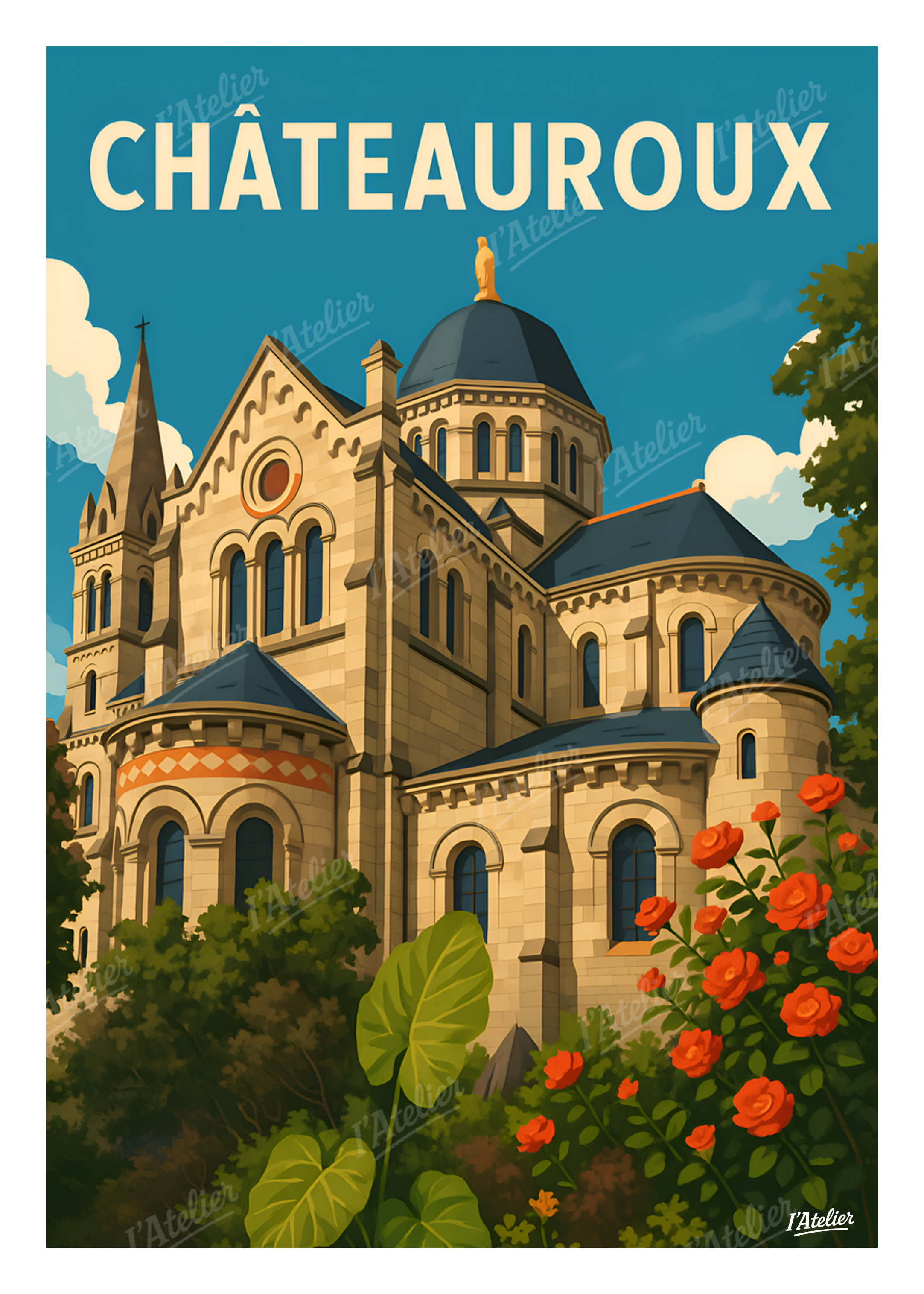 Plongez dans l’atmosphère sereine de Châteauroux avec cette affiche décorative, une illustration qui met en lumière le charme architectural de la ville et la douceur de ses jardins ensoleillés. Entre pierres blondes baignées de lumière, coupoles élégantes et massifs de roses éclatantes, cette scène invite à flâner dans un Châteauroux paisible, où chaque détail évoque une promenade d’été, la chaleur des façades et la tranquillité des parcs alentour. Cette illustration au style vintage est imprimée en France sur un papier Mat haute qualité 170 g/m². Elle apporte à votre intérieur une atmosphère douce, lumineuse et raffinée, idéale pour personnaliser un salon, une chambre ou tout espace inspiré d’un voyage en ville. Apportez à votre décoration murale une touche de poésie urbaine avec ce poster vintage Châteauroux signé I’Atelier.