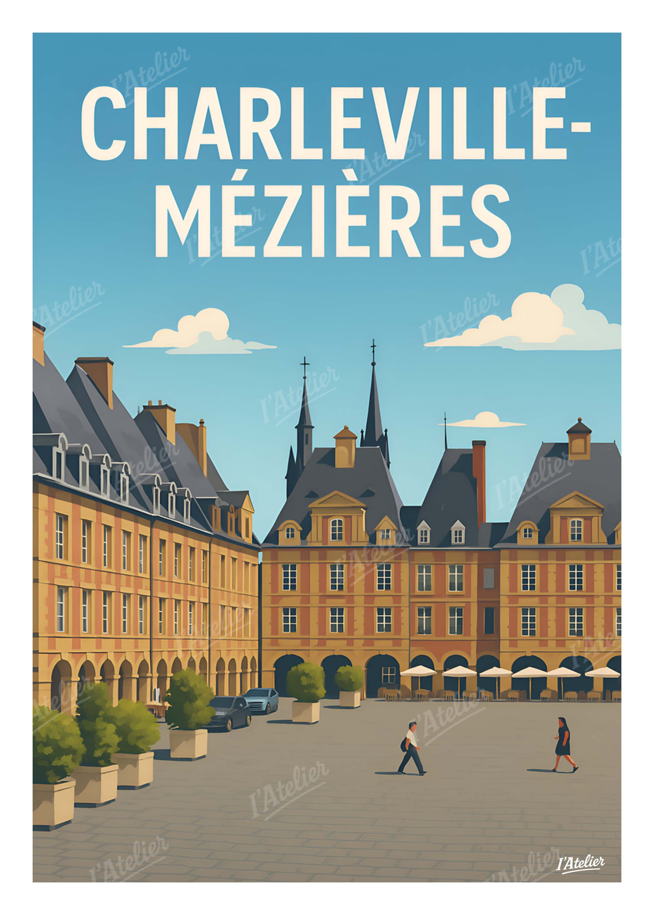 Plongez dans l’atmosphère charmante de Charleville-Mézières avec cette affiche décorative de I’Atelier, un poster vintage qui met en lumière l’élégance intemporelle de la célèbre place Ducale et son architecture harmonieuse au cœur des Ardennes. Entre façades chaleureuses, arcades baignées de lumière et silhouettes flânant sur la place, cette scène illustrée évoque la douceur d’un après-midi en ville, où l’histoire se mêle au calme d’un espace ouvert. Une ambiance apaisante, presque musicale, qui rappelle le rythme tranquille des journées carolomacériennes. Cette illustration au style vintage est imprimée en France sur un papier Mat haute qualité 170 g/m². Elle apporte à votre intérieur une atmosphère douce, urbaine et lumineuse, idéale pour personnaliser un salon, un bureau ou tout espace inspiré par les villes historiques. Apportez une touche de Charleville-Mézières à votre décoration murale avec cette illustration rétro signée I’Atelier.