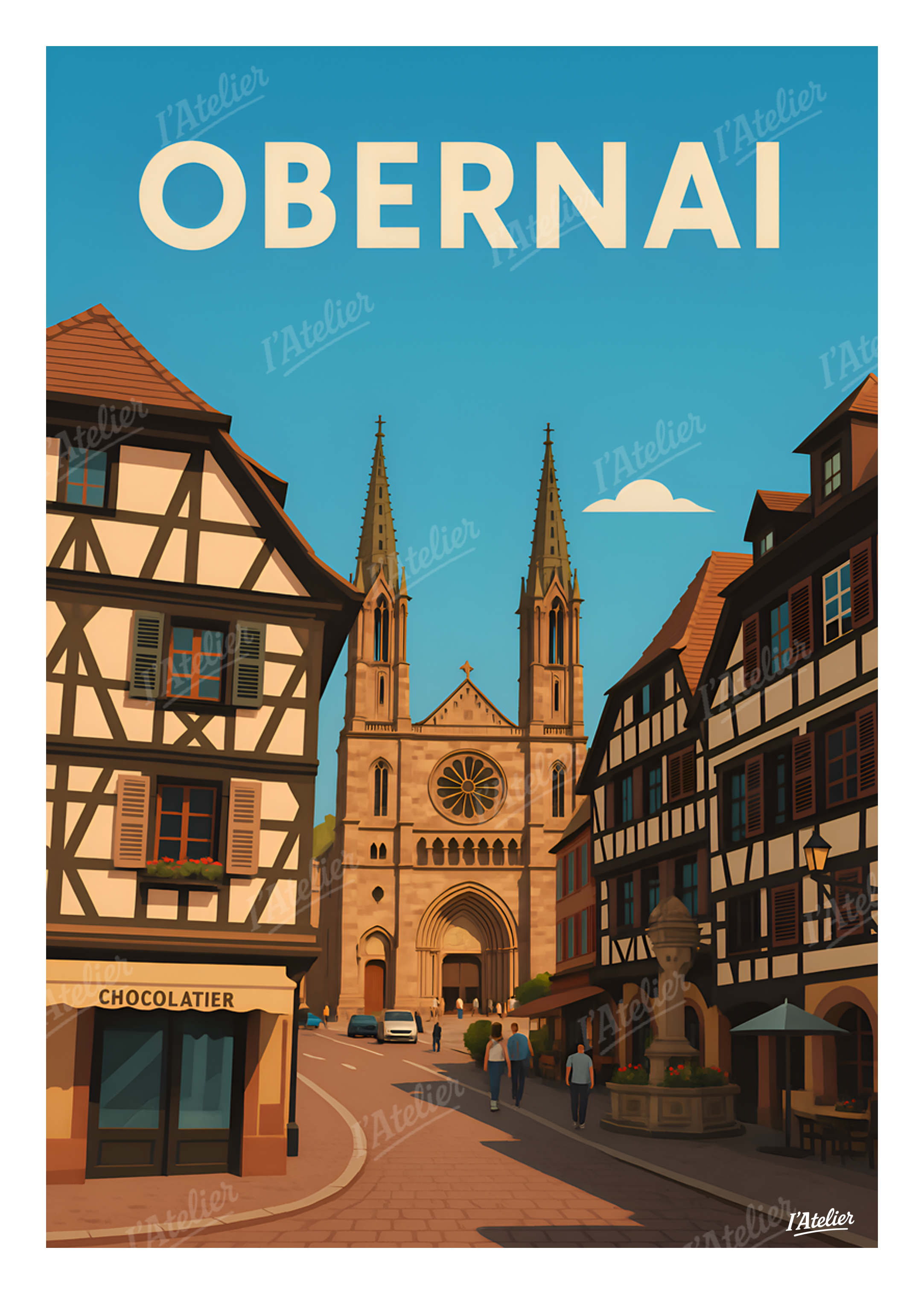 Plongez dans l’atmosphère enchanteresse d’Obernai avec cette affiche vintage de I’Atelier, une création qui met en lumière le charme intemporel de cette cité alsacienne, entre architecture à colombages et élégance d’un patrimoine préservé. Dans cette scène douce et lumineuse, les ruelles pavées guident le regard vers la silhouette élancée de l’église Saints-Pierre-et-Paul, baignée d’un ciel pur. Les façades traditionnelles, les volets colorés et l’animation discrète de la place évoquent les parfums d’un chocolatier, la fraîcheur d’une promenade matinale et cette poésie si particulière des villages d’Alsace. Une atmosphère délicate qui invite à la flânerie et au voyage intérieur. Cette illustration au style vintage est imprimée en France sur un papier Mat haute qualité 170 g/m². Elle apporte à votre intérieur une atmosphère douce, authentique et lumineuse, idéale pour personnaliser un salon, une chambre ou tout espace inspiré des villages d’Alsace. Laissez entrer le charme d’Obernai chez vous avec cette illustration rétro signée I’Atelier.
