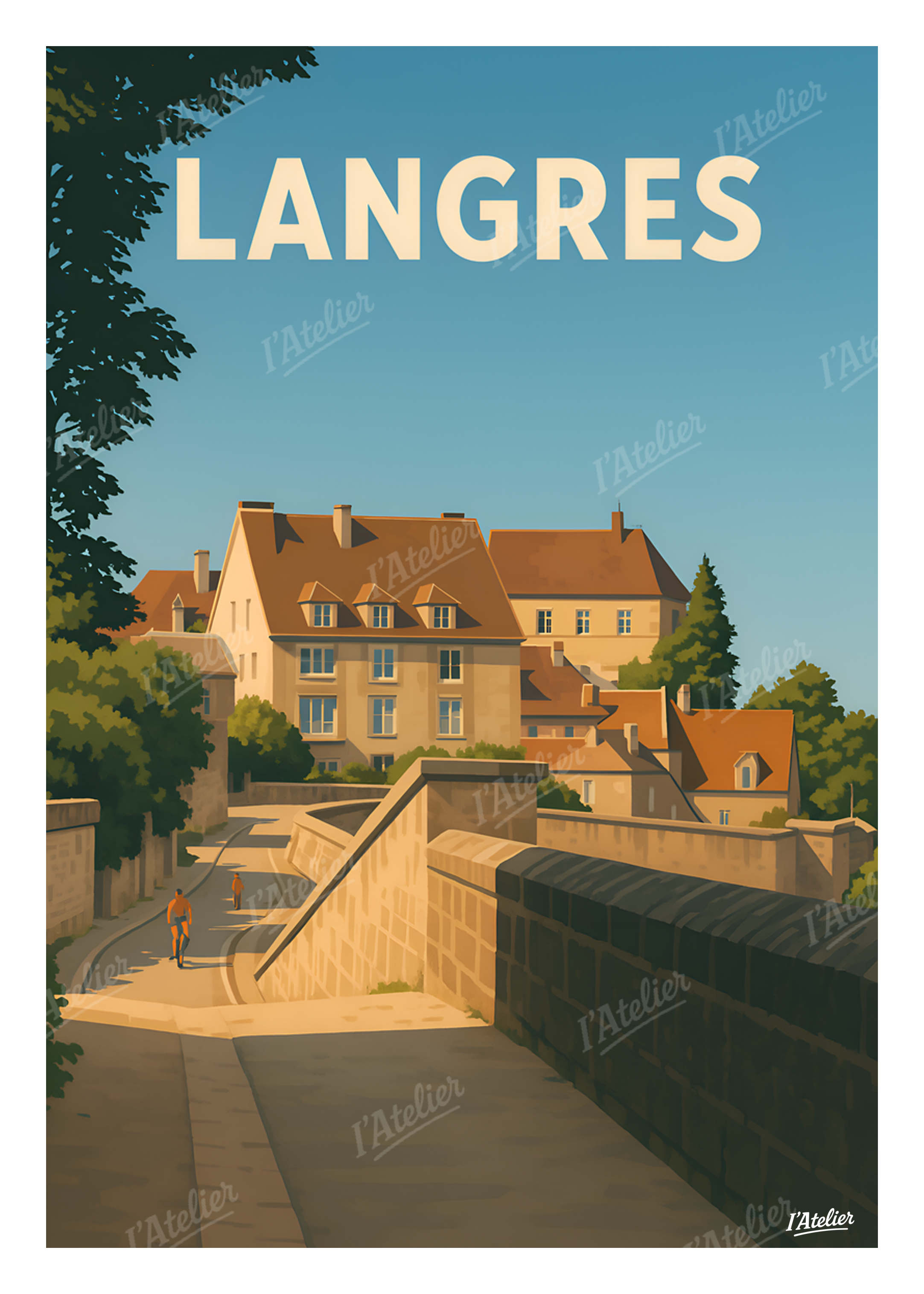 Plongez dans l’atmosphère unique de Langres avec cette affiche Langres signée I’Atelier, un poster vintage qui met en lumière le charme paisible de cette cité perchée aux remparts majestueux, idéale pour une décoration murale pleine de caractère. Au fil des pierres dorées, des toits ocres et des chemins qui serpentent le long des murailles, l’illustration capture la douceur d’une fin d’après-midi d’été. On y ressent le calme des hauteurs, le souffle léger du plateau langrois, et cette élégance discrète des villes fortifiées où chaque détour raconte une histoire. Une illustration rétro qui évoque la balade, la lumière et la sérénité des lieux. Cette illustration au style vintage est imprimée en France sur un papier Mat haute qualité 170 g/m². Elle apporte à votre intérieur une atmosphère douce, lumineuse et authentique, idéale pour personnaliser un salon, une chambre ou tout espace inspiré par les voyages. Apportez à votre intérieur le charme intemporel de Langres et laissez cette affiche décorative sublimer votre espace.