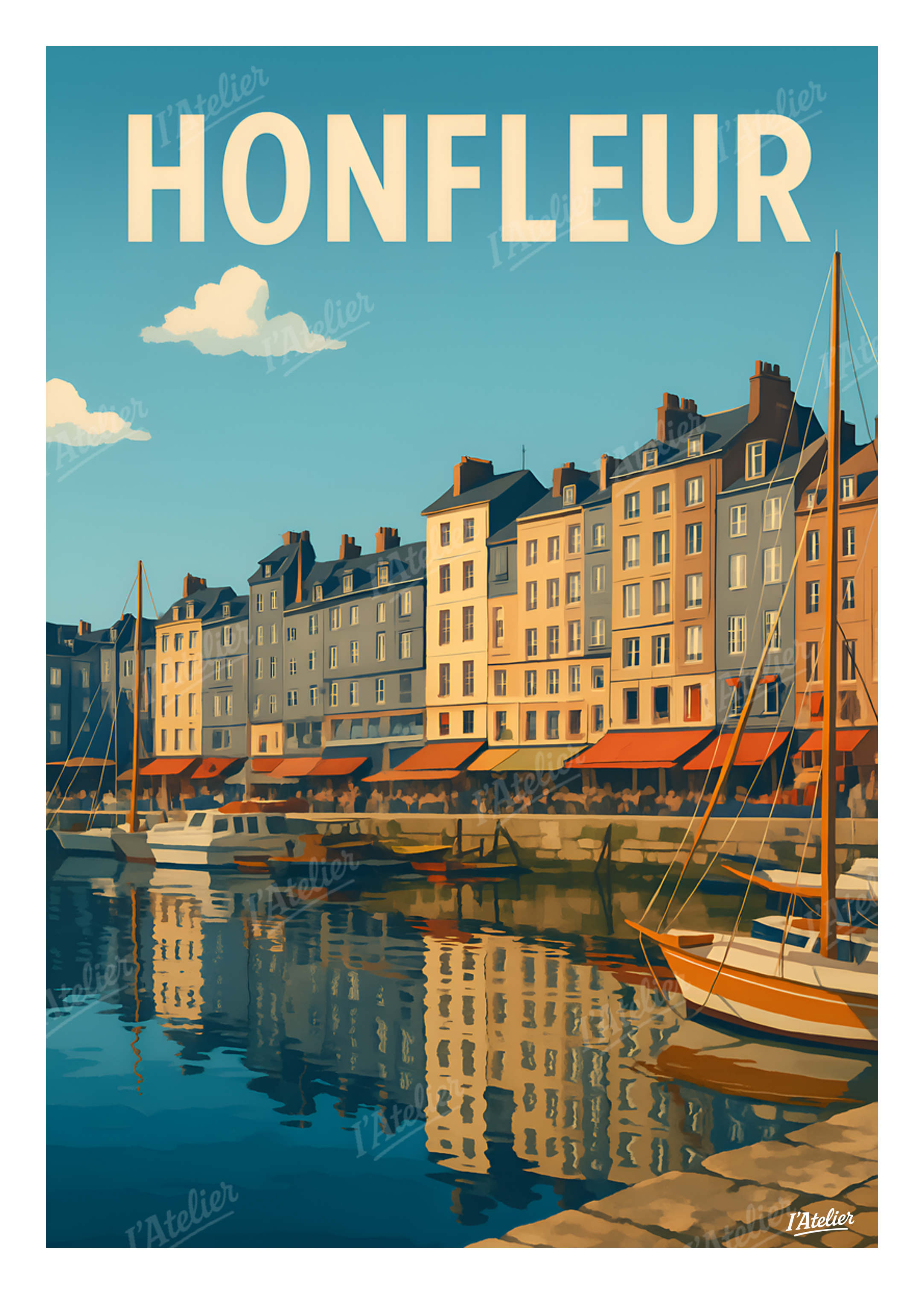 Plongez dans l’atmosphère envoûtante du port de Honfleur avec cette affiche Honfleur de I’Atelier, une illustration qui révèle le charme intemporel du Vieux Bassin et de ses façades colorées baignées de lumière normande. Entre reflets miroitants sur l’eau, voiliers élégants et ruelles bordées de maisons séculaires, cette scène capture la douceur maritime et l’effervescence tranquille de ce port emblématique. On y ressent la brise salée, le murmure des bateaux, et cette poésie typique des cités portuaires du Nord, idéale pour une décoration murale raffinée et inspirante. Cette illustration au style vintage est imprimée en France sur un papier Mat haute qualité 170 g/m². Elle apporte à votre intérieur une atmosphère douce, lumineuse et authentique, idéale pour personnaliser un salon, une chambre ou tout espace inspiré du bord de mer. Laissez entrer l’élégance maritime de Honfleur chez vous grâce à cette illustration rétro signée I’Atelier.