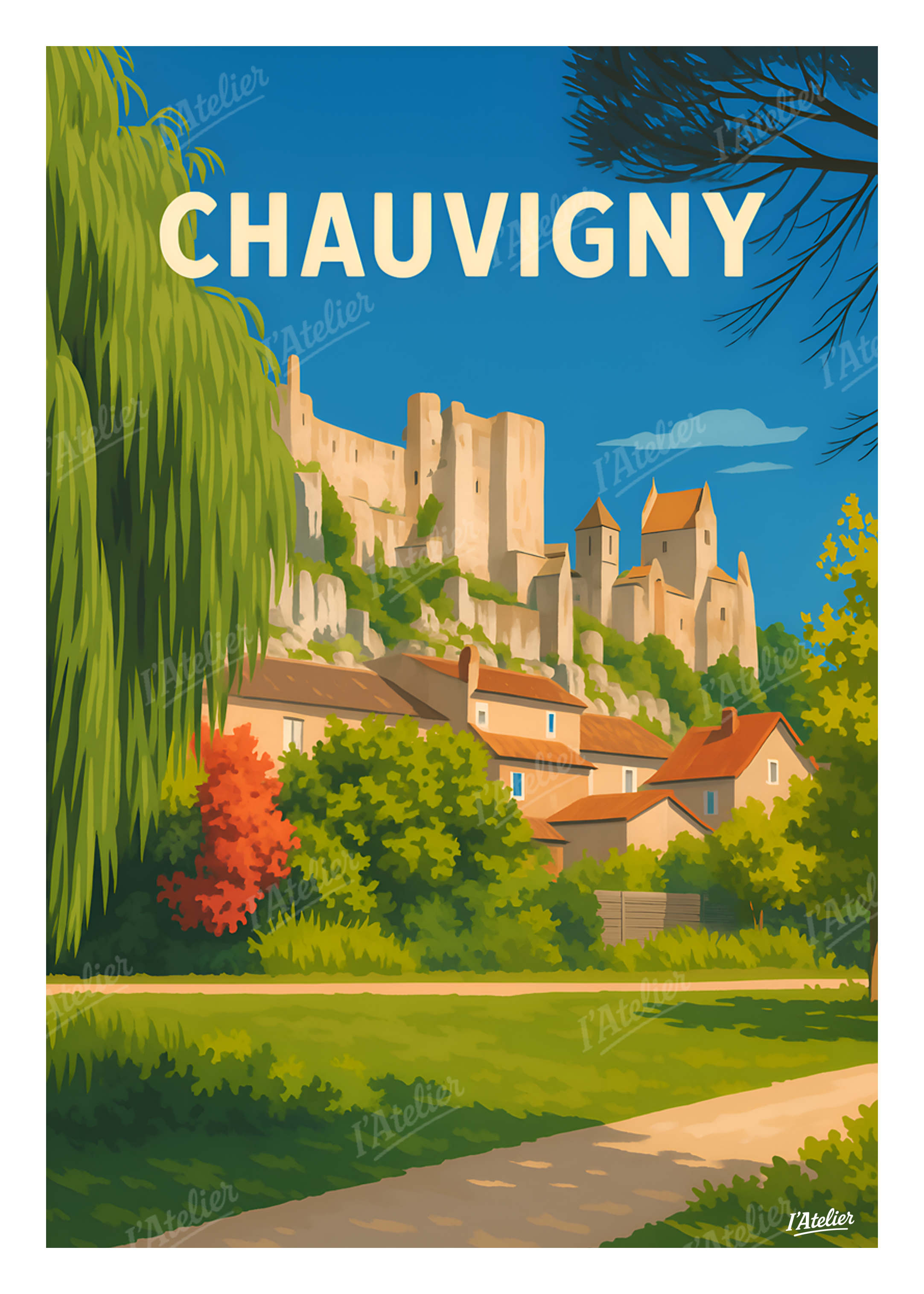 Plongez au cœur de Chauvigny avec cette affiche vintage de I’Atelier, une illustration qui met en lumière l’atmosphère unique de cette cité médiévale et de ses forteresses perchées, idéale pour une affiche Chauvigny ou un poster vintage Chauvigny dédié à la décoration murale. Entre remparts baignés de soleil, toits ocres et végétation généreuse, la scène dévoile la douceur d’une promenade au pied des cinq châteaux, où se mêlent lumière dorée, ombres des vieilles pierres et murmure du vent. Une ambiance paisible et contemplative, qui évoque la magie du patrimoine vivant de la Vienne. Cette illustration au style vintage est imprimée en France sur un papier Mat haute qualité 170 g/m². Elle apporte à votre intérieur une atmosphère douce, lumineuse et harmonieuse, idéale pour personnaliser un salon, une chambre ou tout espace inspiré des paysages français. Apportez une touche de charme médiéval à votre intérieur avec cette illustration rétro signée I’Atelier.