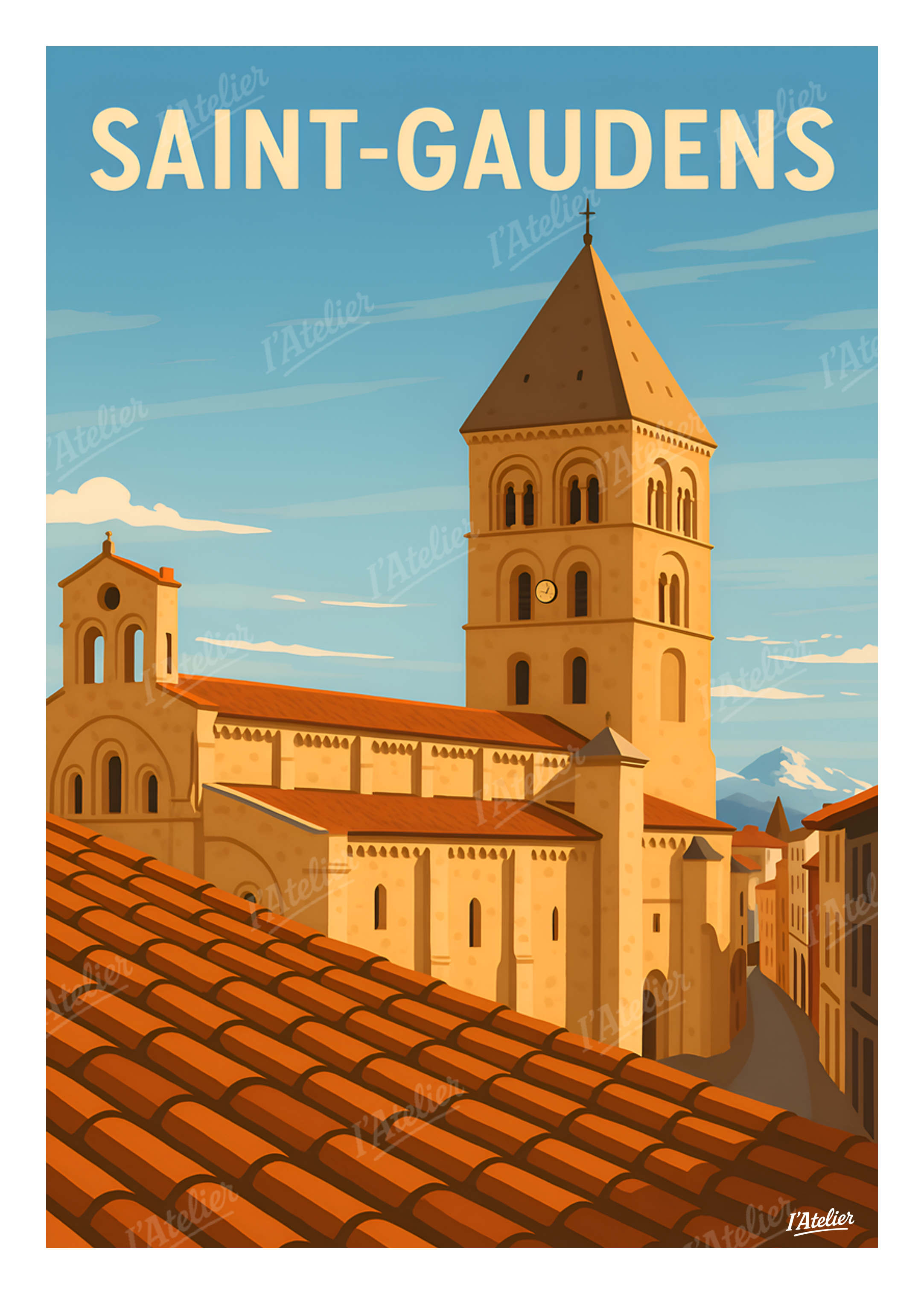 Plongez au cœur de Saint-Gaudens avec cette affiche vintage de I’Atelier, une illustration qui met en lumière la majestueuse collégiale romane et l’atmosphère ensoleillée du Comminges, parfaite pour une affiche Saint-Gaudens ou une décoration murale inspirée du Sud-Ouest. Au fil des toits de tuiles et sous un ciel d’un bleu tendre, la silhouette élancée du clocher se détache avec douceur, tandis qu’au loin se dévoilent les Pyrénées baignées de lumière. Cette scène évoque le calme des ruelles anciennes, la chaleur minérale des vieilles pierres et cette sensation d’être porté par le charme authentique d’une ville entre montagne et patrimoine. Cette illustration au style vintage est imprimée en France sur un papier Mat haute qualité 170 g/m². Elle apporte à votre intérieur une atmosphère harmonieuse, lumineuse et inspirante, idéale pour personnaliser un salon, une chambre ou tout espace dédié au voyage et aux paysages du Sud. Apportez une touche de caractère et d’histoire à votre intérieur avec cette illustration rétro signée I’Atelier.