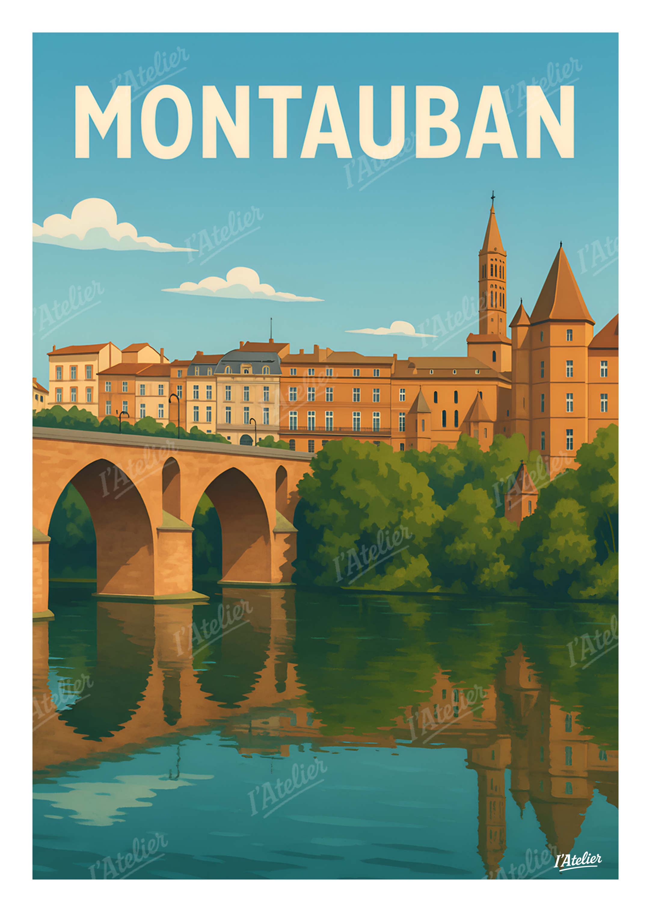 Plongez au cœur de Montauban avec cette affiche vintage de I’Atelier, une illustration qui met en lumière le charme architectural et la douceur ensoleillée de la ville emblématique du Tarn-et-Garonne. Au fil du Tarn, le célèbre Pont Vieux se reflète dans l’eau calme tandis que les façades de briques rosées et les tours élégantes dessinent un panorama paisible et lumineux. Cette scène évoque la chaleur du Sud-Ouest, le murmure de la rivière et la poésie des fins de journée d’été, offrant une véritable parenthèse d’évasion à travers une décoration murale raffinée. Cette illustration au style vintage est imprimée en France sur un papier Mat haute qualité 170 g/m². Elle apporte à votre intérieur une atmosphère douce, lumineuse et harmonieuse, idéale pour personnaliser un salon, une chambre ou tout espace inspiré par le patrimoine du Sud-Ouest. Apportez une touche de charme et de caractère à votre maison avec ce poster vintage Montauban signé I’Atelier.